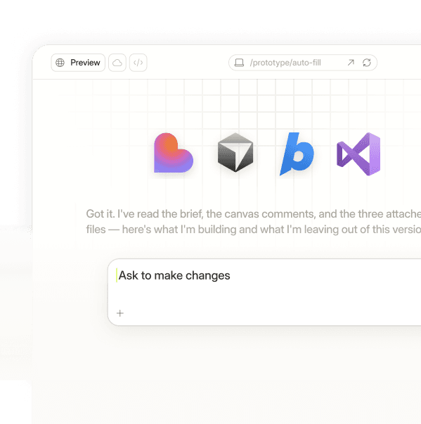 One click. Your canvas becomes a working prototype in Lovable, Cursor, or Bolt.